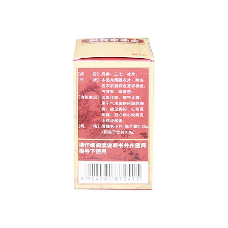 【主要成份】 丹参、浸膏、三七、冰片。