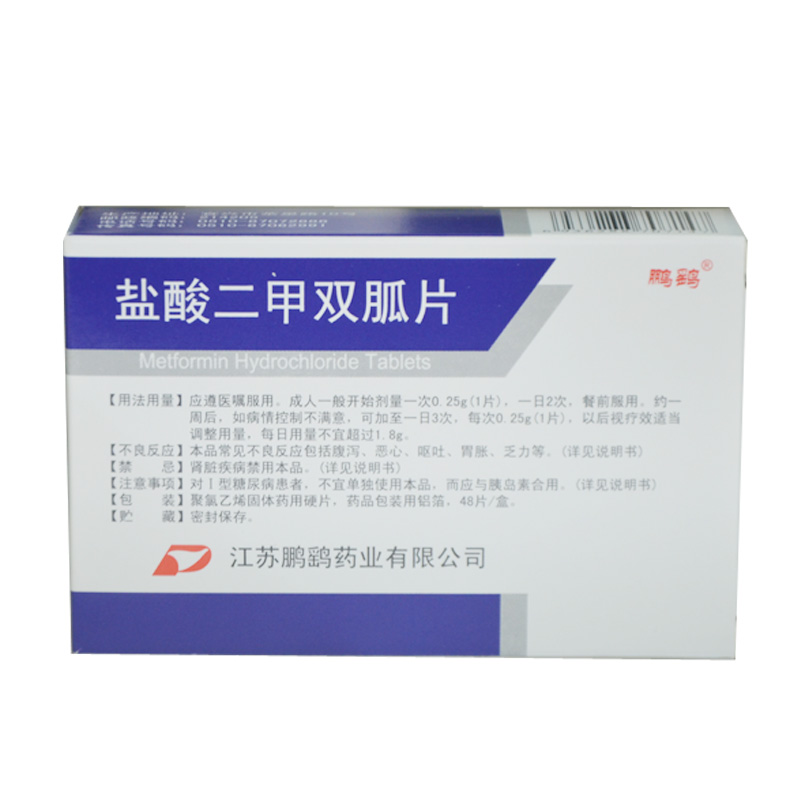 【注意事项】 1.口服本品期间,定期检查肾功能,可以减少乳酸中毒的发生,尤其是老年患者更应定期检查肾功能。接受外科手术和碘剂X射线摄影检查前患者暂时停止口服本品。 2.肝功能不良:某些乳酸性酸中毒患者合并有肝功能损害,因此有肝脏疾病者应避免使用本品。 3.应激状态:在发热、、感染和外科手术时,服用口服降糖药患者易发生血糖暂时控制不良,此时必须暂时停用本品,改用胰岛素。待应激状态缓解后恢复用。 4.对1型糖尿病患者,不宜单独使用本品,而应与胰岛素合用。 5.应定期进行血液学检查。本品治疗引起巨幼红细胞性贫血罕见。如发生应排除维生素B12缺乏。 6.即往服用盐酸二甲双胍片治疗,血糖控制良好的2型糖尿病患者出现实验室化验异常或临床异常(特别是乏力或难于言表的不适),应当迅速寻找酮症酸中毒或乳酸酸中毒的证据,测定包括血清电解质、酮体、血糖、血酸碱度,乳酸盐、丙酮酸二甲双胍水平,存在任何类型的酸中毒都应立即停用,开始其他恰当的治疗方法。 7.单独接受盐酸二甲双胍片治疗的患者正常情况下不会产生低血糖,但当进食过少,或大运动量后没有补充足够的热量,与其他降糖药联合使用(如磺脲类药物) 8.老年、衰弱或营养不良的患者,以及肾上腺和垂体功能低减、酒精中毒的患者更易发生低血糖。老年患者和服用β-肾上腺阻滞剂的患者的低血糖很难辨认,须注意。 9.患者应当了解盐酸二甲双胍片治疗的潜在危险和益处,以及选择治疗的方式。他们也应知道同时控制饮食、规律运动的重要性,以及规律检测血糖、糖化血红蛋白、肾脏功能和血液学参数的重要性。 10.须向患者解释乳酸酸中毒的危险性、症状和容易发生乳酸酸中毒的情况。当出现不能解释的过度呼气、肌痛、乏力、嗜睡或其他非特异性的症状时,应立即停药,及时看医生。在二甲双胍治疗的初期常出现胃肠道症状,一旦患者坚持某一剂量治疗后出现胃肠道症状,通常与药物本身无关,随后出现的胃肠道症状可能是由于乳酸酸中毒或其他严重的疾病造成的。请仔细阅读说明书并遵医嘱使用。