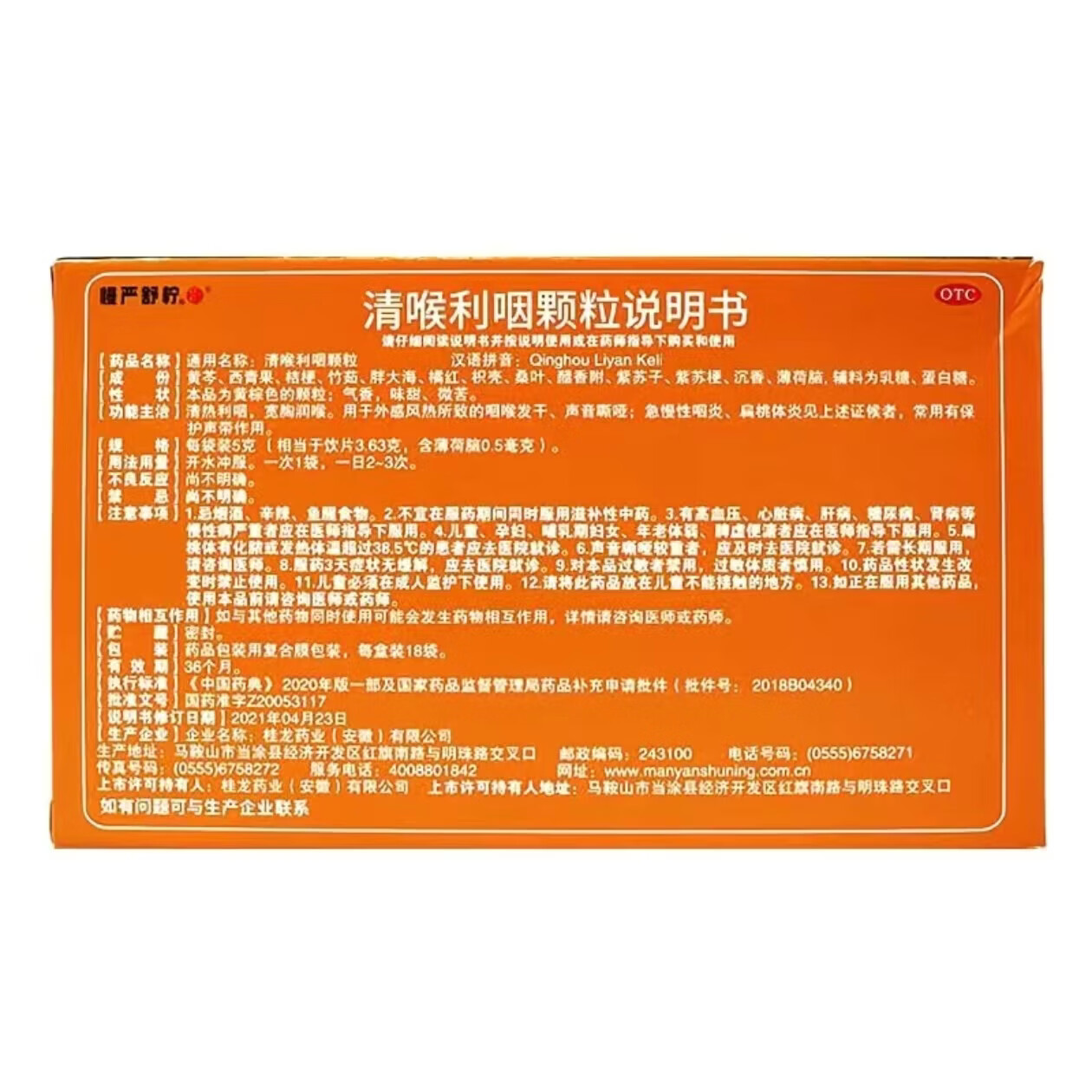 商品名称:清喉利咽颗粒(乳糖型)(慢严舒柠)