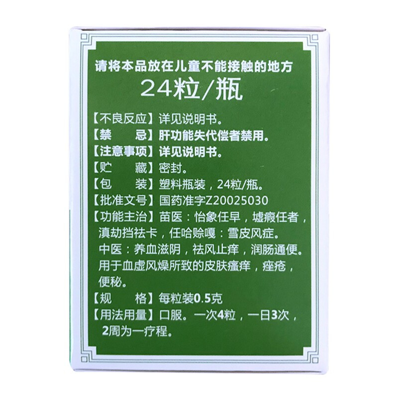 【适应症/功能主治】 苗医:怡象任早,墟瘕任者,滇劫挡祛卡,任哈赊嘎;雪皮风症。 中医:养血滋阴,祛风止痒,润肠通便。用于血虚风燥所致的皮肤瘙痒,痤疮,便秘。