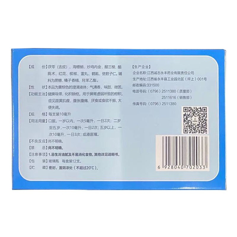 【注意事项】 1.忌生冷油腻及不易消化食物。 2.婴儿及糖尿病患儿应在医师指导下服用。 3.感冒时不宜服用。 4.如腹胀腹痛较重,或长期厌食、体弱消瘦者应去医院就诊。 5.严格按用法用量服用,本品不宜长期服用。 6.服药7天症状无缓解,应去医院就诊。 7.对本品过敏者禁用,过敏体质者慎用。 8.本品性状发生改变时禁止使用。 9.儿童必须在成人监护下使用。 10.请将本品放在儿童不能接触的地方。 11.如正在使用其他药品,使用本品前请咨询医师或药师。
