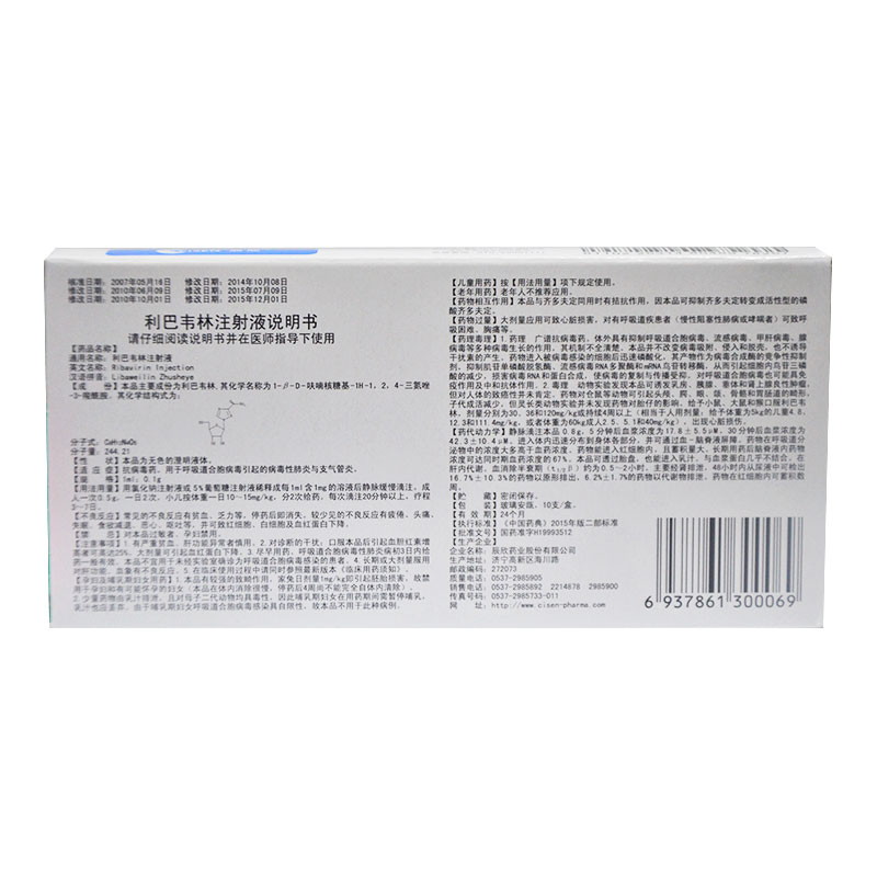 商品名称:利巴韦林注射液