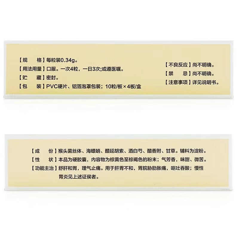 【主要成份】 猴头菌培养物,海螵蛸,醋延胡索, 酒白芍,醋香附,甘草。辅料为淀粉。