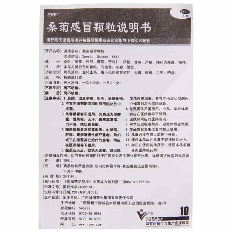 【主要成份】桑叶、菊花、连翘、薄荷、苦杏仁、桔梗、甘草、芦根。辅料为蔗糖、糊精。