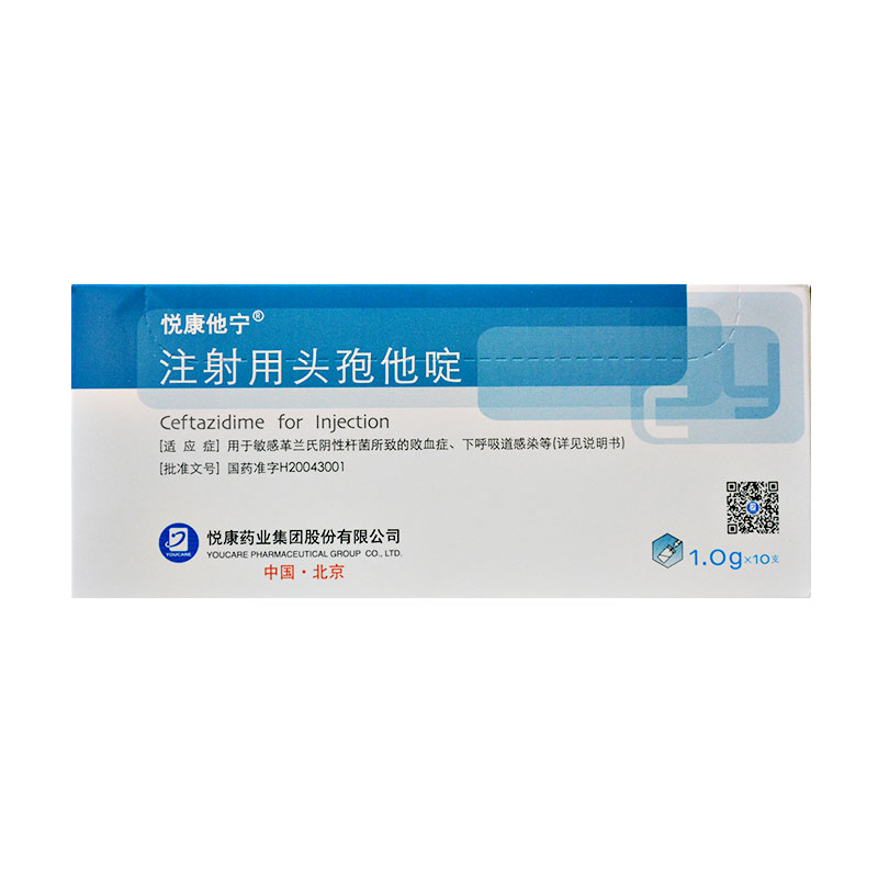 【不良反应】悦康他宁注射用头孢他啶的不良反应少见而轻微。少数患者可发生皮疹、皮肤瘙痒、药物热;恶心、腹泻、腹痛;注射部位轻度静脉炎;偶可发生一过性血清氨基转移酶酶、血尿素氮、血肌酐值的轻度升高;白细胞、血小板减少及嗜酸性粒细胞增多等。