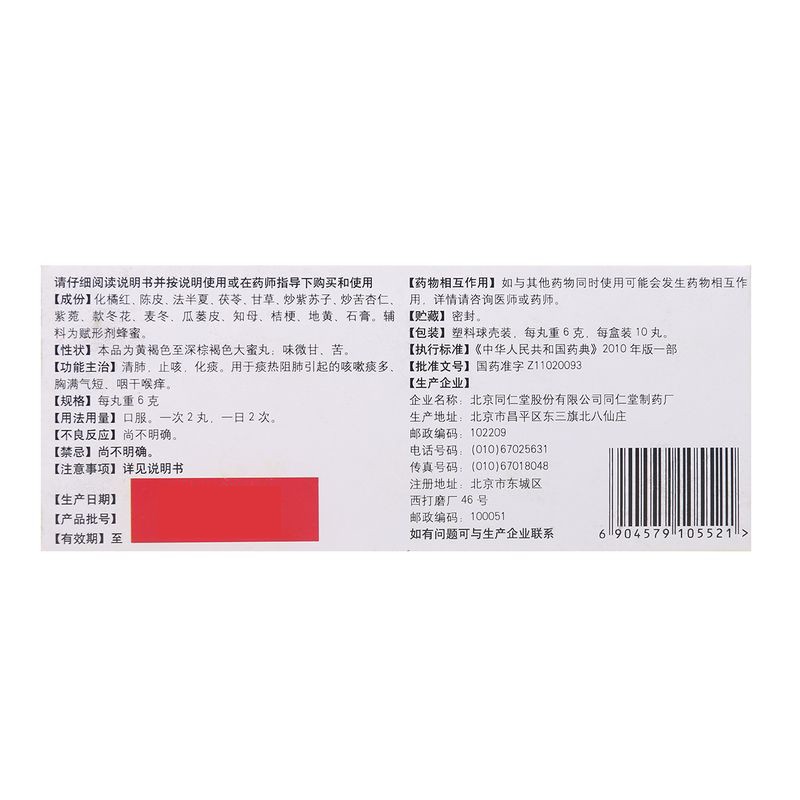 生产厂家:北京同仁堂股份有限公司同仁堂制药厂