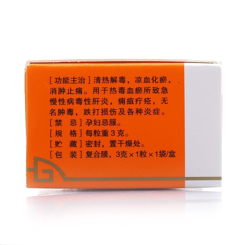 【适应症/功能主治】 清热解毒、凉血化瘀,消肿止痛。用于热毒血瘀所致急慢性病毒性肝炎,痈疽疔疮,无名肿毒,跌打损伤及各种炎症。
