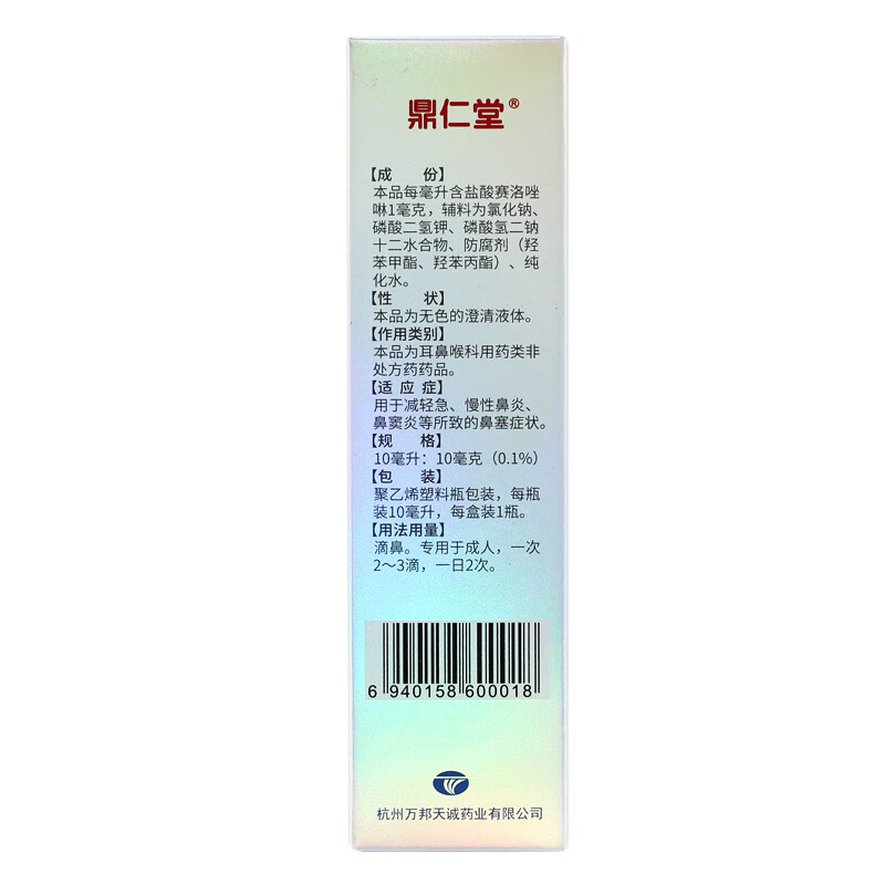 通用名称:盐酸赛洛唑啉滴鼻液