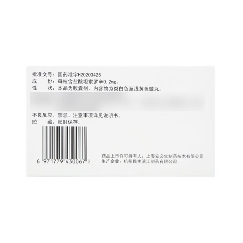 通用名称:盐酸坦索罗辛缓释胶囊.
