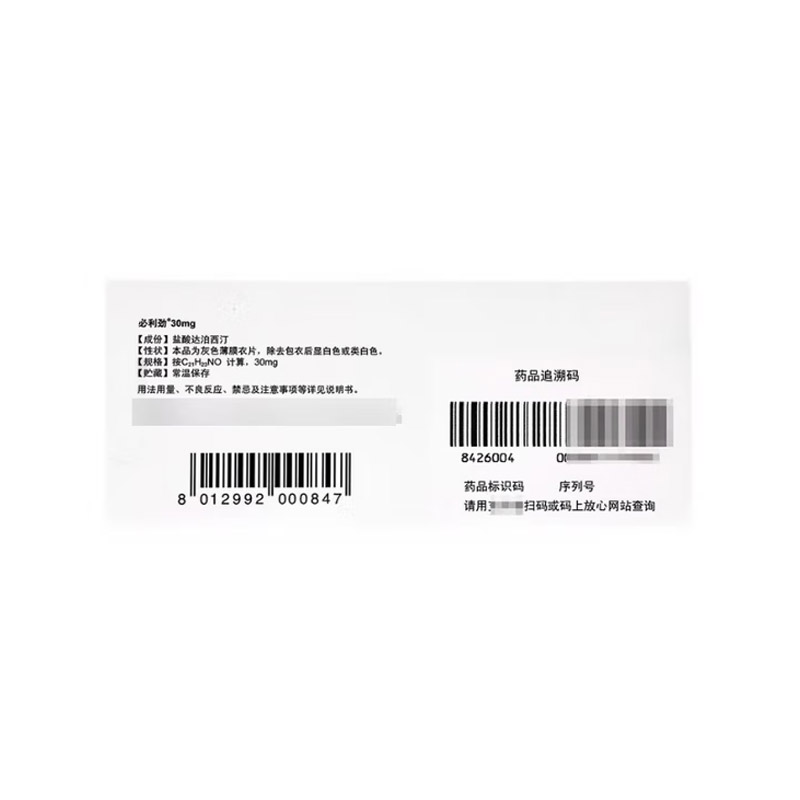商品名称:盐酸达泊西汀片