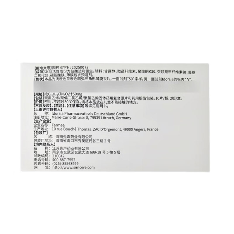 批准文号/注册证号/备案证号/标准号:国药准字HJ20250073
