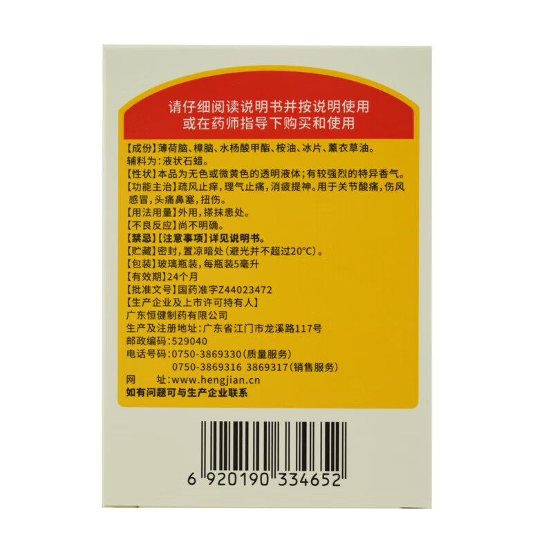 【主要成份】薄荷脑、桉油、樟脑、冰片、水杨酸甲酯、薰衣草油。辅料:液状石蜡。