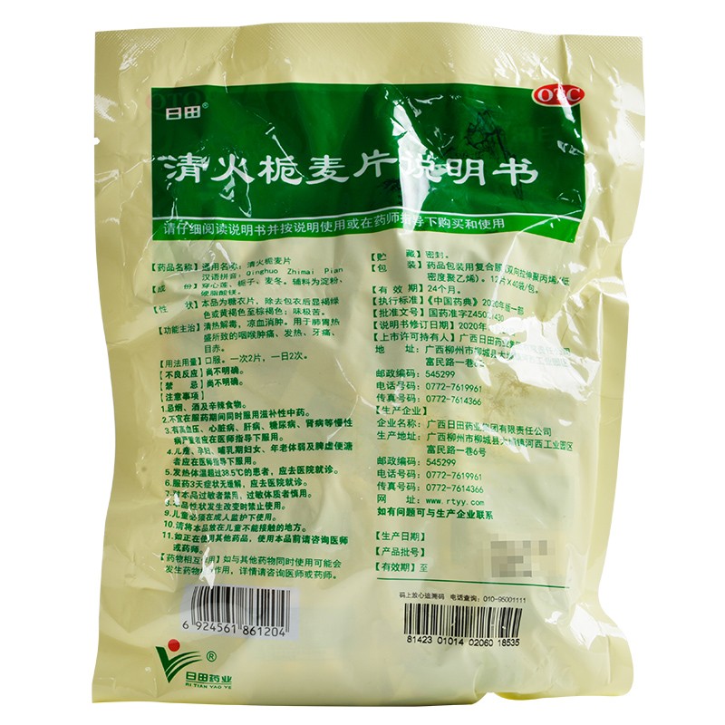 【注意事项】1、忌烟、酒及辛辣食物。2、不宜在服药期间同时服用温补性中药。3、有高血压、心脏病、肝病、糖尿病、肾病等慢性病严重者应在医师指导下服用日田清火栀麦片。4、儿童、孕妇、哺乳期妇女、年老体弱及脾虚便溏者应在医师指导下服用。5、发热体温超过38℃的患者,应去医院就诊。6、用药3天症状无缓解,应去医院就诊。7、对本品过敏者禁用,过敏体者慎用。8、本品性状发生改变时禁止使用。9、儿童必须在成人监护下使用。10、请将本品放在儿童不能接触的地方。11、如正在使用其他药品,使用日田清火栀麦片前请咨询医师或药师。