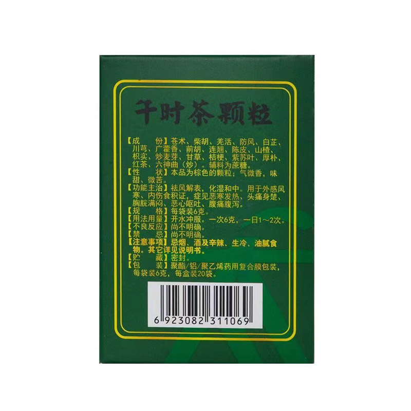 【主要成份】红茶、广藿香、羌活、紫苏叶、苍术、连翘、厚朴、六神曲(炒)、山楂、麦芽(炒)、甘草等19味。