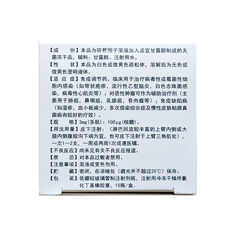 【用法用量】1、皮下注射:淋巴回流较丰富的上臂内侧或大腿内侧腹股沟下端为宜,也可皮下注射于上臂三角肌处。 2、一次1-2支,一周或两周一次或遵医嘱。