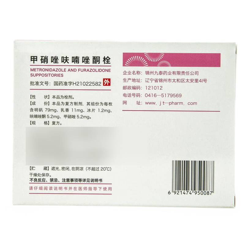 通用名称:甲硝唑呋喃唑酮栓