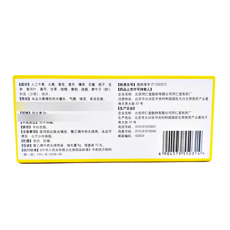 生产厂家:北京同仁堂股份有限公司同仁堂制药厂