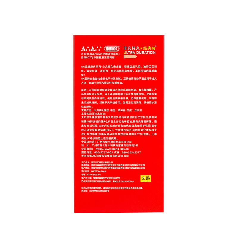【商品名称】天然橡胶胶乳男用避孕套(AA.邦德007).
