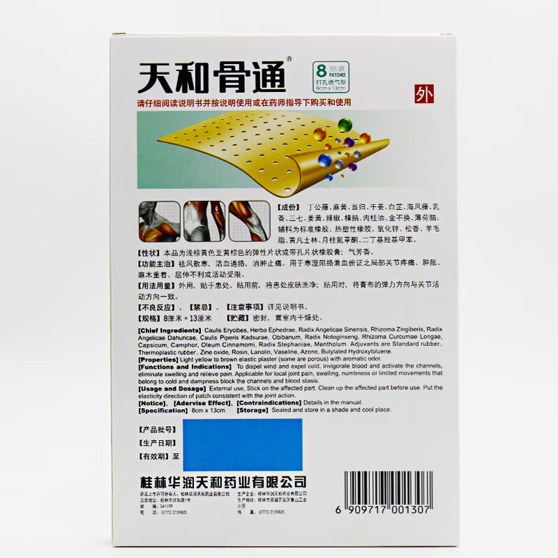 【注意事项】1.皮肤过敏者慎用。2.患处皮肤溃破者及孕妇慎用。3.使用过程中如出现皮肤发红、瘙痒等症状,可适当减少贴用时间。4.每次贴用的时间不宜超过12小时。5.骨通贴膏不宜长期或大面积使用,用药后皮肤过敏如出现瘙痒、皮疹等现象时,应停止使用,症状严重者应去医院就诊。6.对本品过敏者禁用,过敏体质者慎用。7.本品性状发生改变时禁止使用。8.儿童必须在成人监护下使用。9.请将本品放在儿童不能接触的地方。10.如正在使用其他药品,使用本品前请咨询医师或药师。