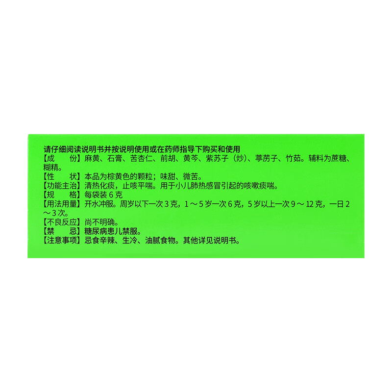 【功能主治/适应症】清热化痰,止咳平喘。用于小儿肺热感冒引起的咳嗽痰喘。