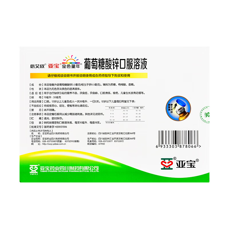 【注意事项】1.本品宜餐后服用以减少胃肠道刺激。2.应在确诊为缺锌症时使用,如需长期服用,必须在医师指导下使用。3.对本品过敏者禁用,过敏体质者慎用。4.本品性状发生改变时禁止使用。5.请将本品放在儿童不能接触的地方。6.儿童必须在成人监护下使用。7.如正在使用其他药品,使用本品前请咨询医师或药师。8.本品为过饱和溶液,遇冷时可能出现白色药物析出,可加温溶解后服用,不影响疗效。如不溶解请勿服用,可与生产企业联系。9.使用时需注意吸管插入方式,如产生胶塞落屑,慎用。