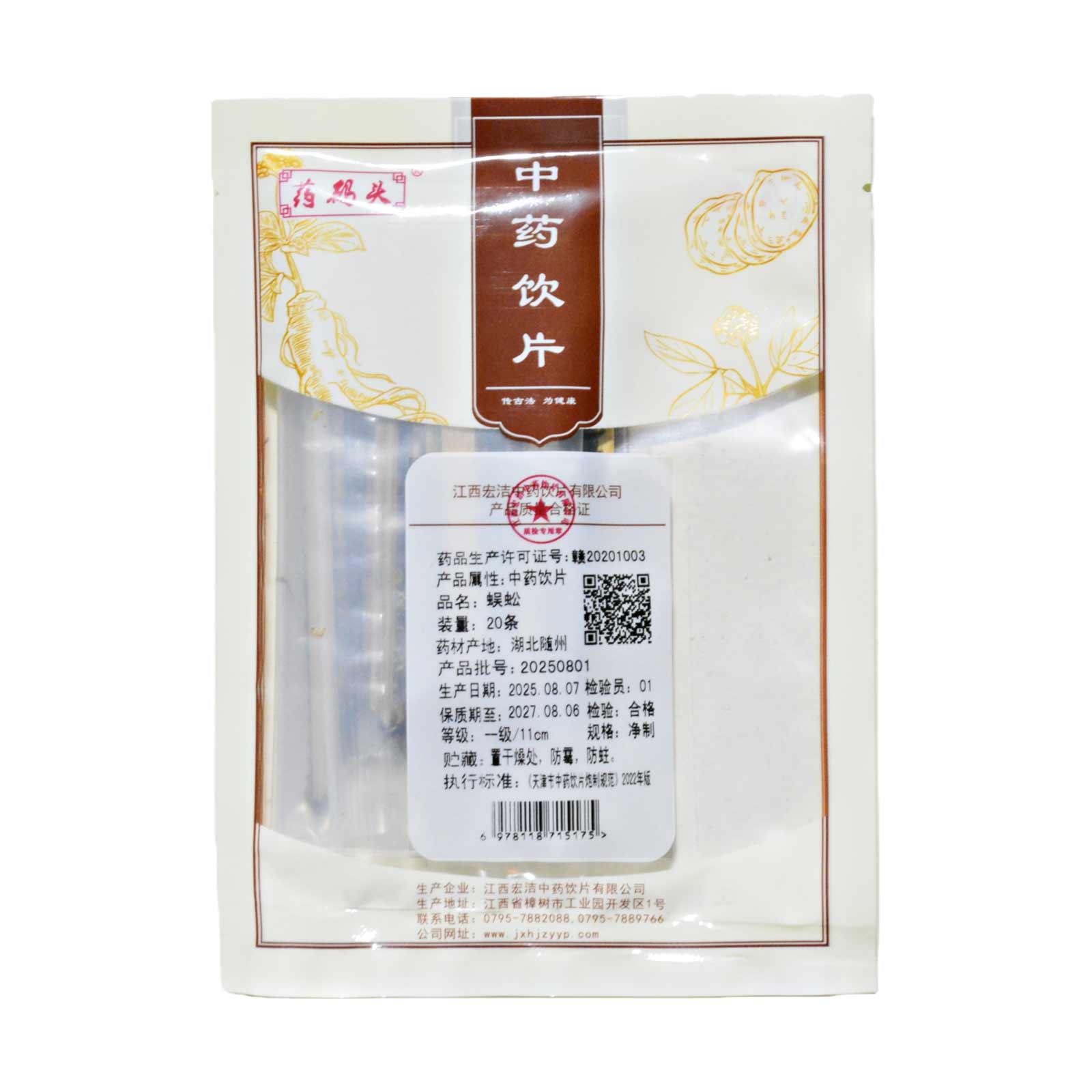 会员可见蜈蚣江西宏洁中药饮片有限公司规格:一级*11cm*20条*袋效期:2027-09-11 件装量:1库存:充裕 中包装:20.00
