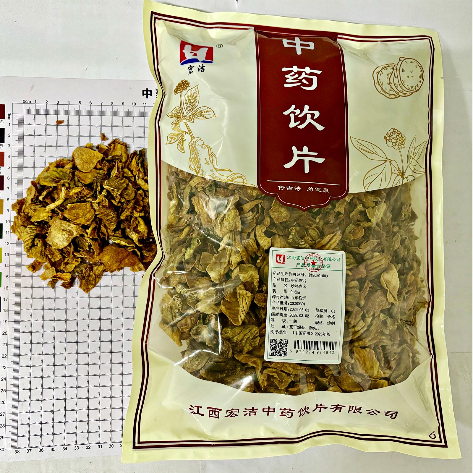 会员可见炒鸡内金江西宏洁中药饮片有限公司规格:一级*炒制*0.5kg效期:2029-03-02 件装量:1库存:充裕 中包装:0.50