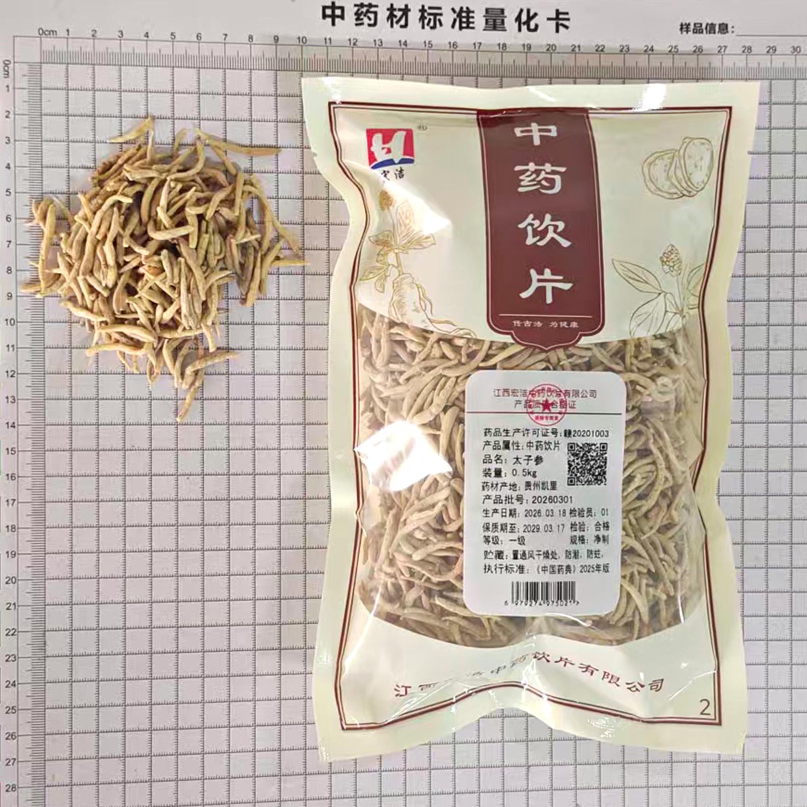 会员可见太子参江西宏洁中药饮片有限公司规格:一级*净制*0.5kg效期:2029-03-17 件装量:1库存:充裕 中包装:0.50