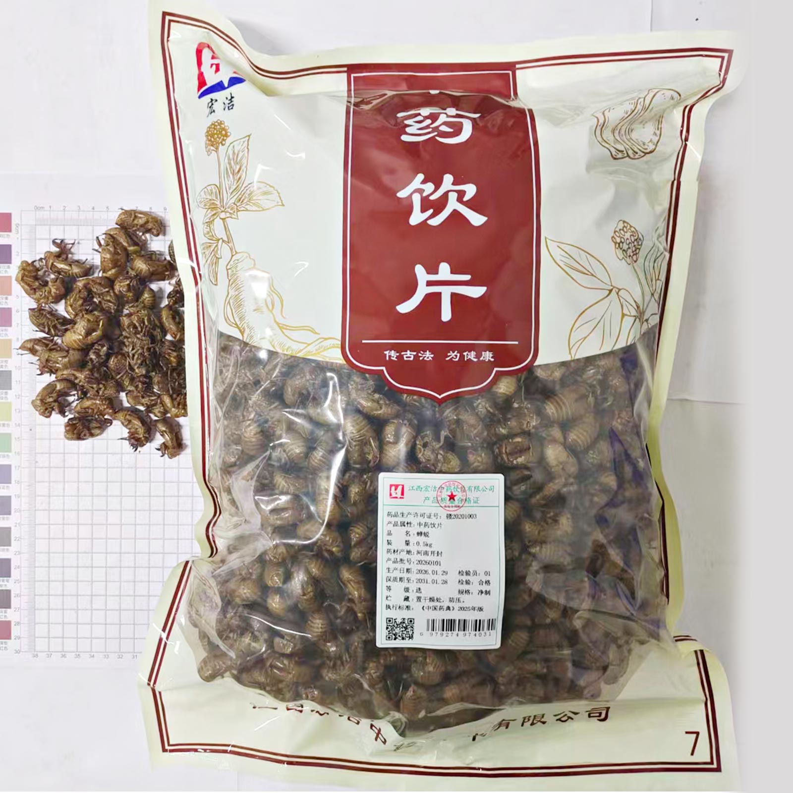 会员可见蝉蜕江西宏洁中药饮片有限公司规格:选*净制*0.5kg效期:2031-01-28 件装量:1库存:充裕 中包装:0.50