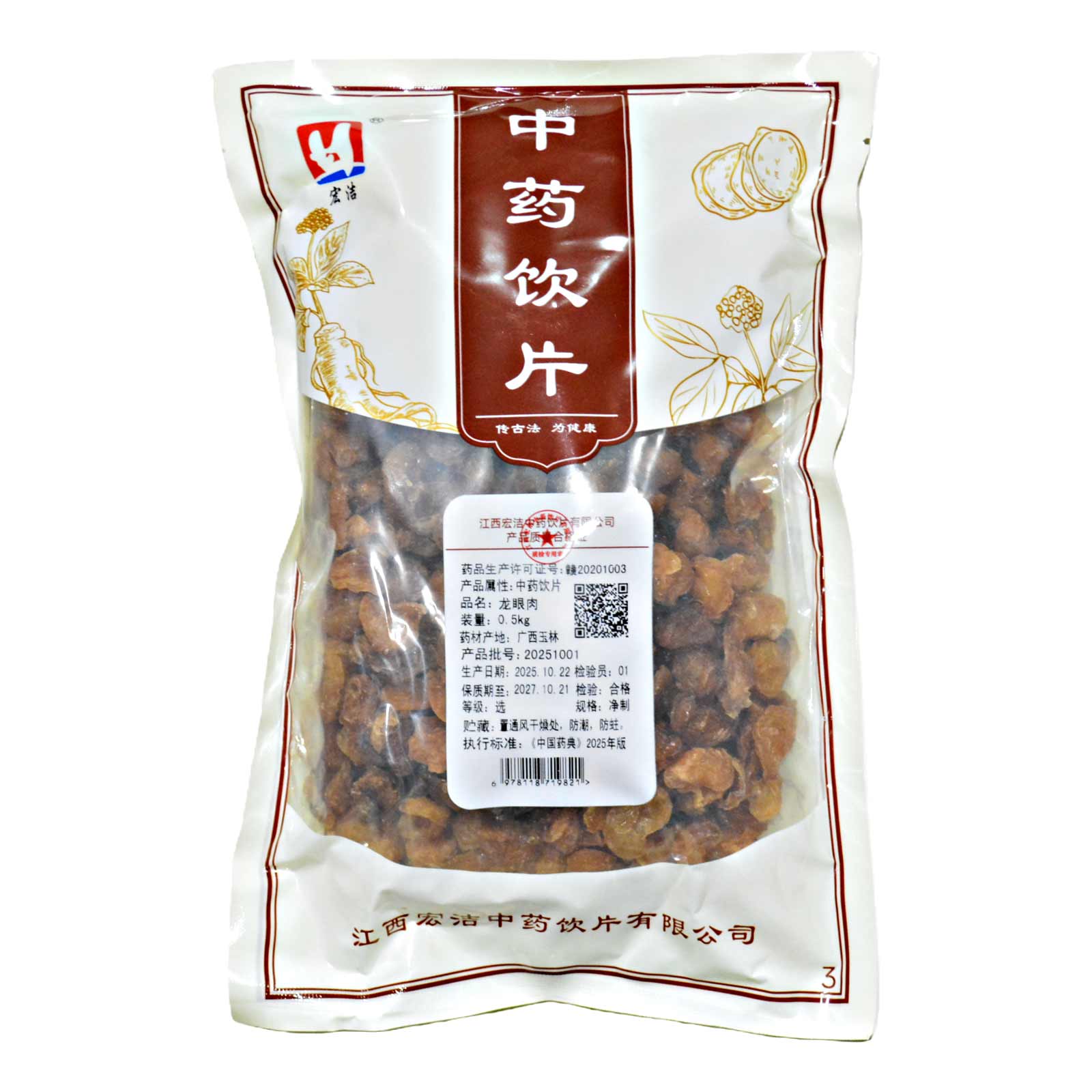 会员可见龙眼肉江西宏洁中药饮片有限公司规格:选*净制*0.5kg效期:2027-10-21 件装量:1库存:充裕 中包装:0.50