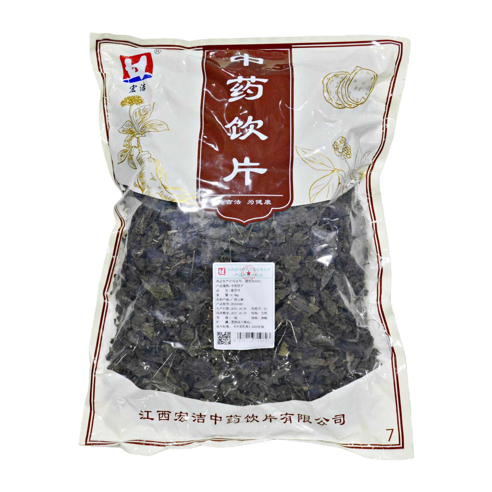 会员可见紫苏叶江西宏洁中药饮片有限公司规格:一级*净制*0.5kg效期:2027-10-19 件装量:1库存:充裕 中包装:0.50