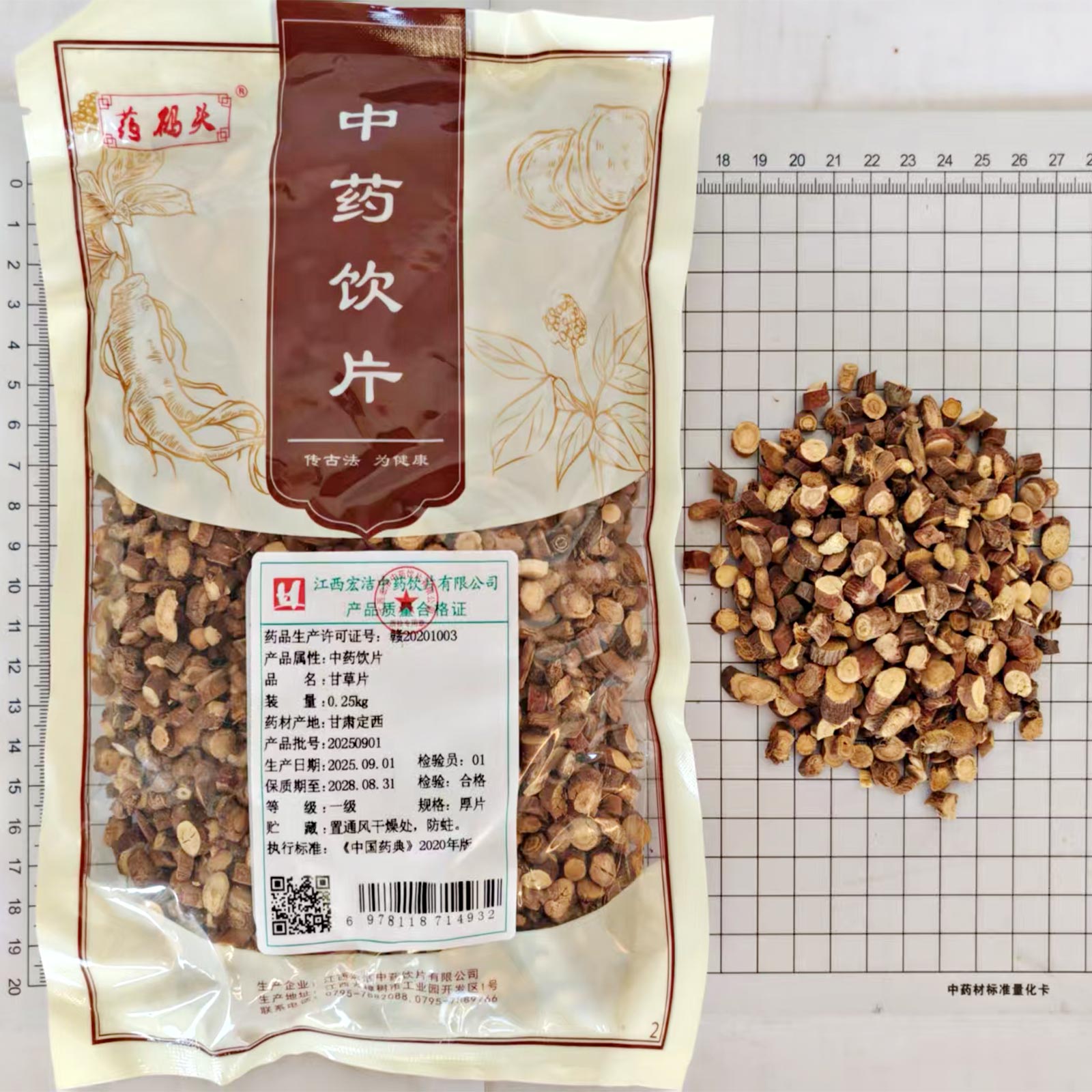 会员可见甘草片江西宏洁中药饮片有限公司规格:一级*厚片*0.25kg效期:2028-08-31 件装量:1库存:充裕 中包装:0.25