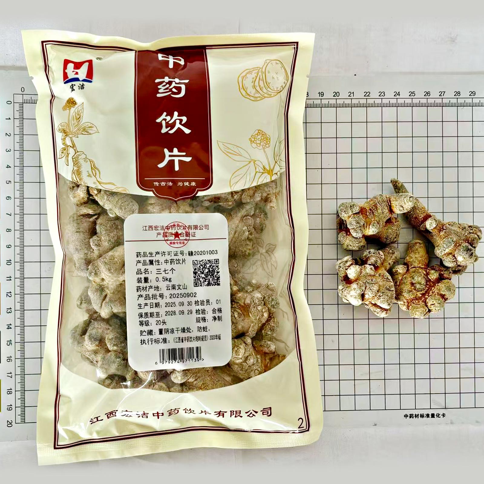 会员可见三七个江西宏洁中药饮片有限公司规格:20头*净制*0.5kg效期:2028-09-29 件装量:1库存:充裕 中包装:0.50