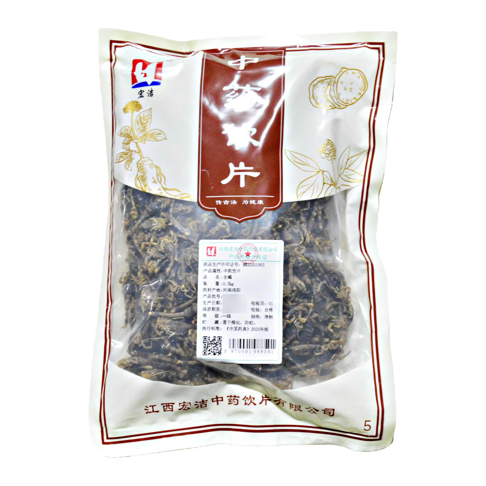 会员可见全蝎江西宏洁中药饮片有限公司规格:一级*净制*0.5kg效期:2029-01-27 件装量:1库存:充裕 中包装:0.50