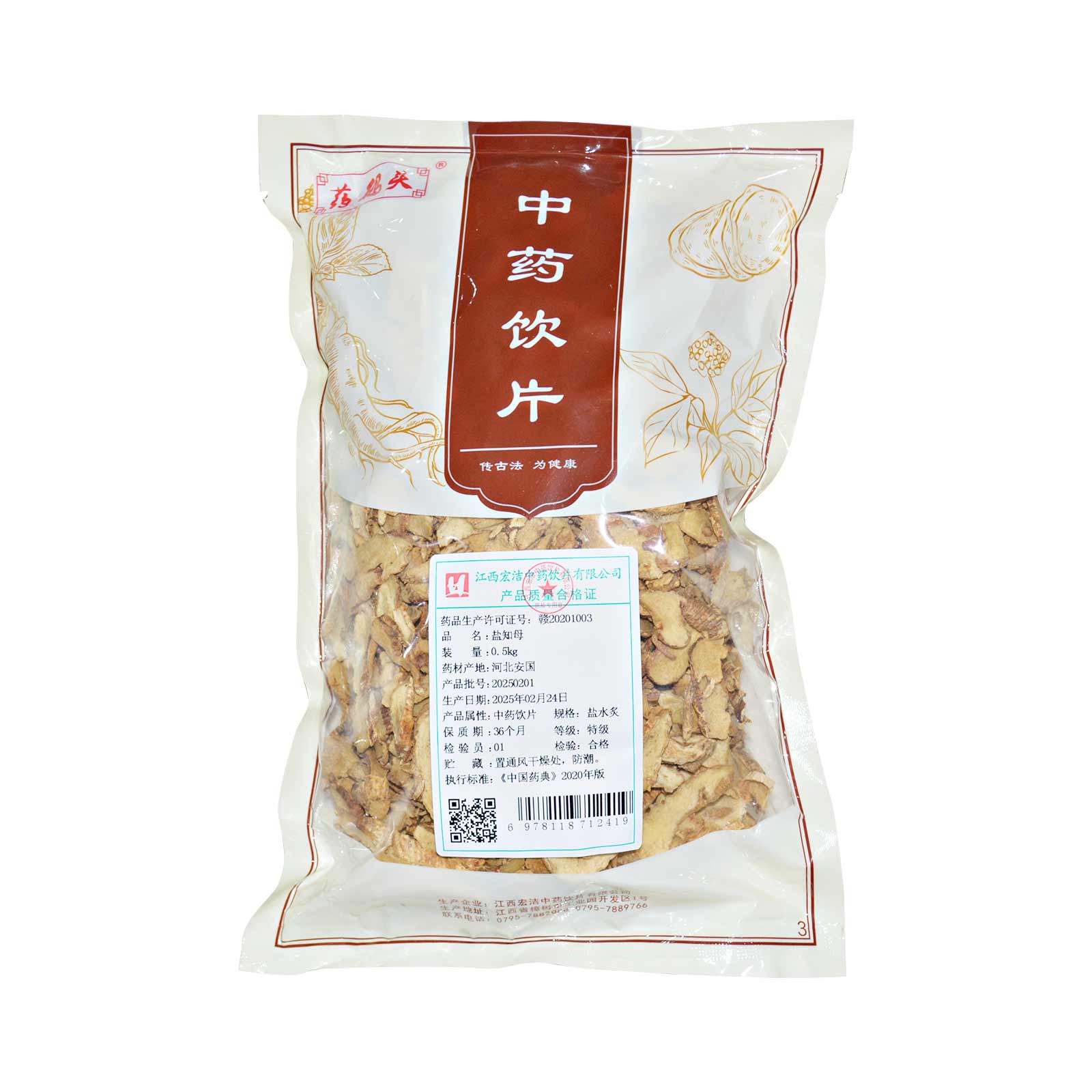 会员可见盐知母江西宏洁中药饮片有限公司规格:特级*盐水炙*0.5kg效期:2028-09-01 件装量:1库存:充裕 中包装:0.50