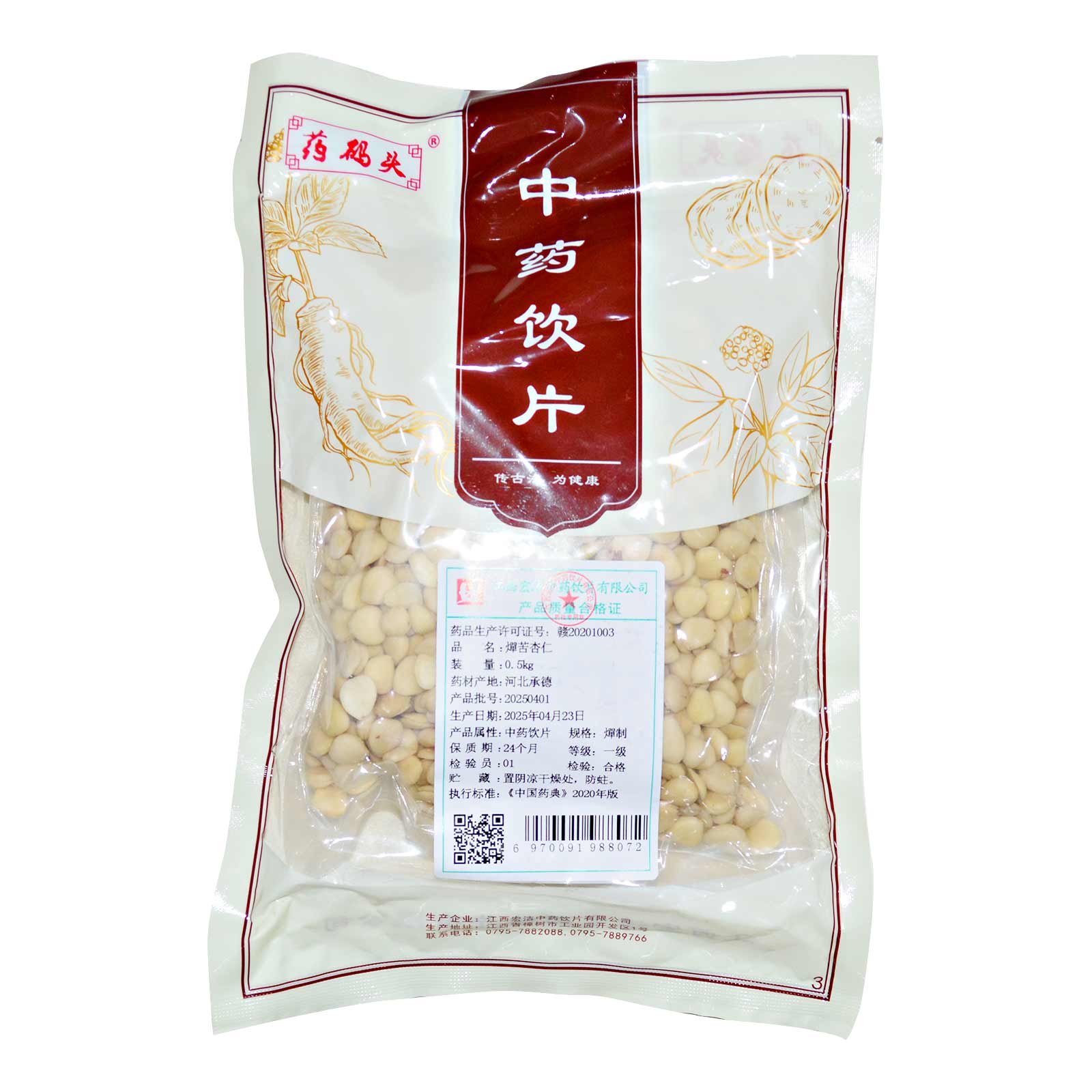 会员可见燀苦杏仁江西宏洁中药饮片有限公司规格:一级*燀制*0.5kg效期:2027-12-05 件装量:1库存:充裕 中包装:0.50