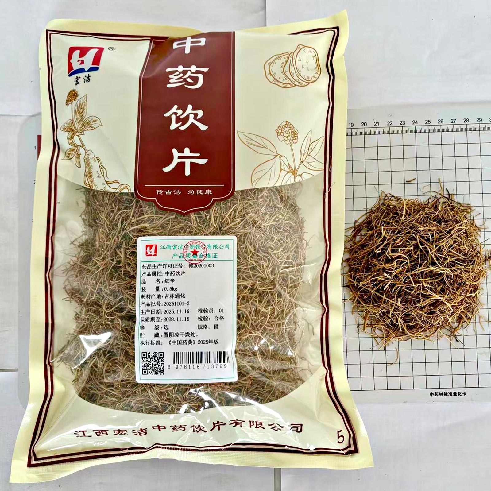 会员可见细辛江西宏洁中药饮片有限公司规格:选*段*0.5kg效期:2029-02-05 件装量:1库存:充裕 中包装:0.50