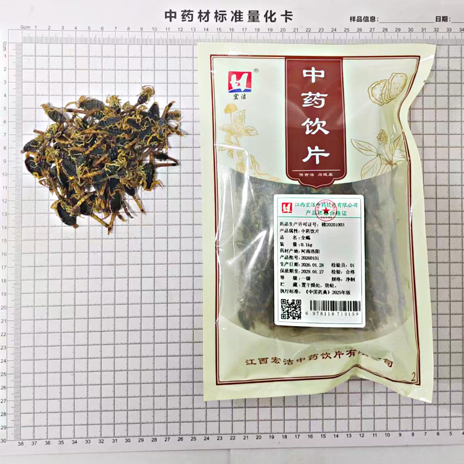 会员可见全蝎江西宏洁中药饮片有限公司规格:一级*净制*0.1kg效期:2028-10-14 件装量:1库存:充裕 中包装:0.10