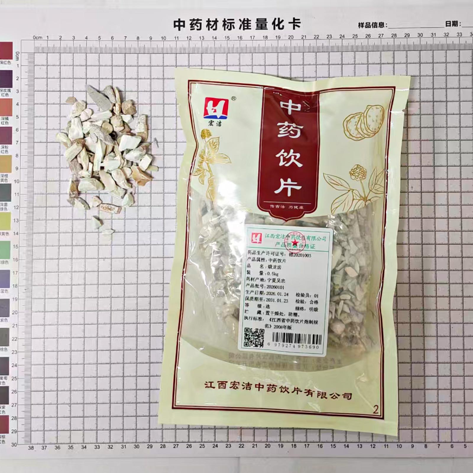 会员可见煅龙齿江西宏洁中药饮片有限公司规格:选*明煅*0.5kg效期:2031-01-23 件装量:1库存:充裕 中包装:0.50