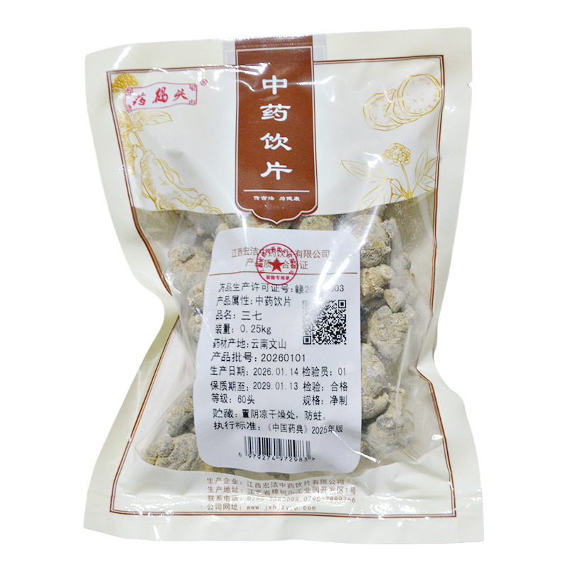 会员可见三七江西宏洁中药饮片有限公司规格:60头*净制*0.25kg效期:2029-01-13 件装量:1库存:充裕 中包装:0.25