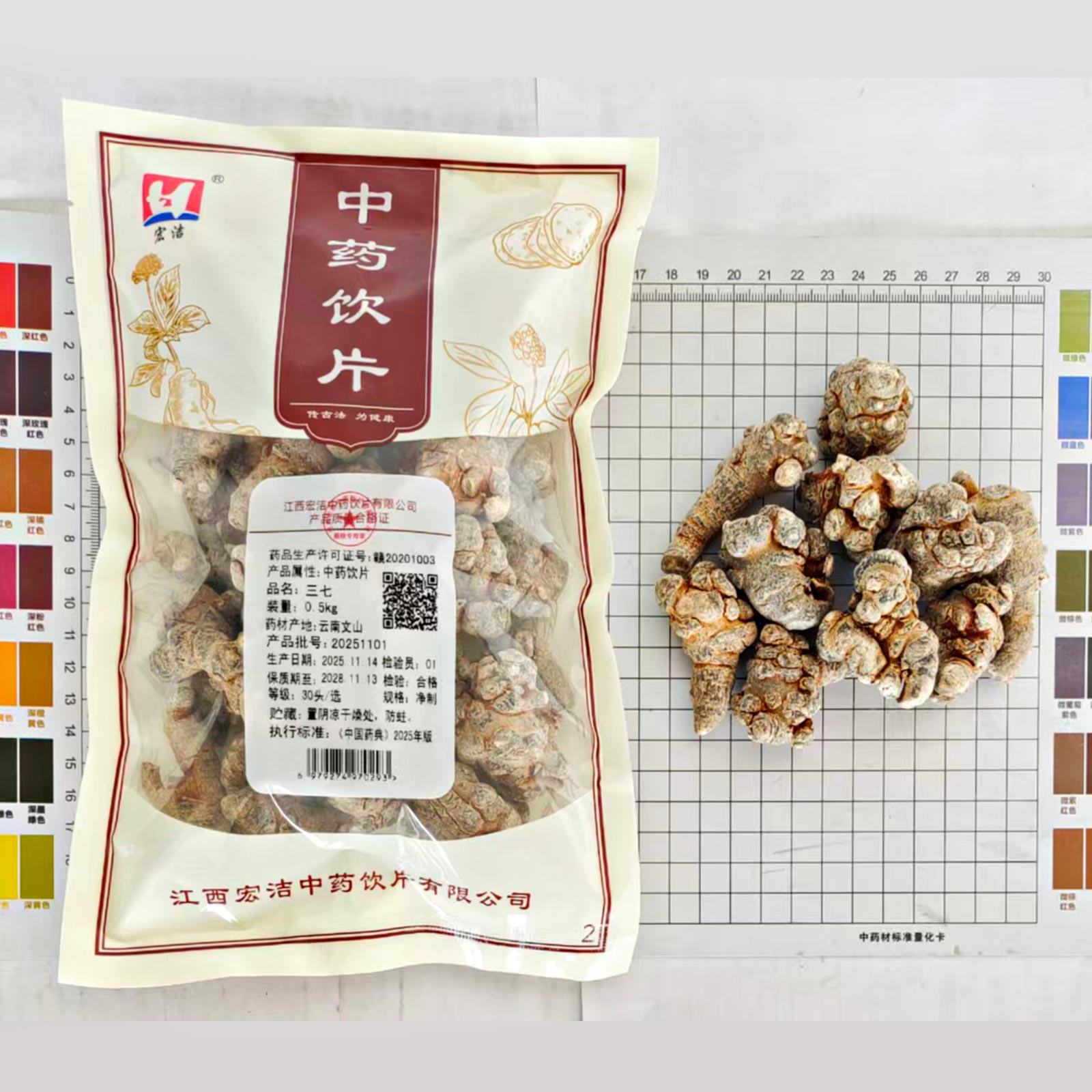 会员可见三七江西宏洁中药饮片有限公司规格:30头*选*净制*0.5kg效期:2028-11-13 件装量:1库存:充裕 中包装:0.50