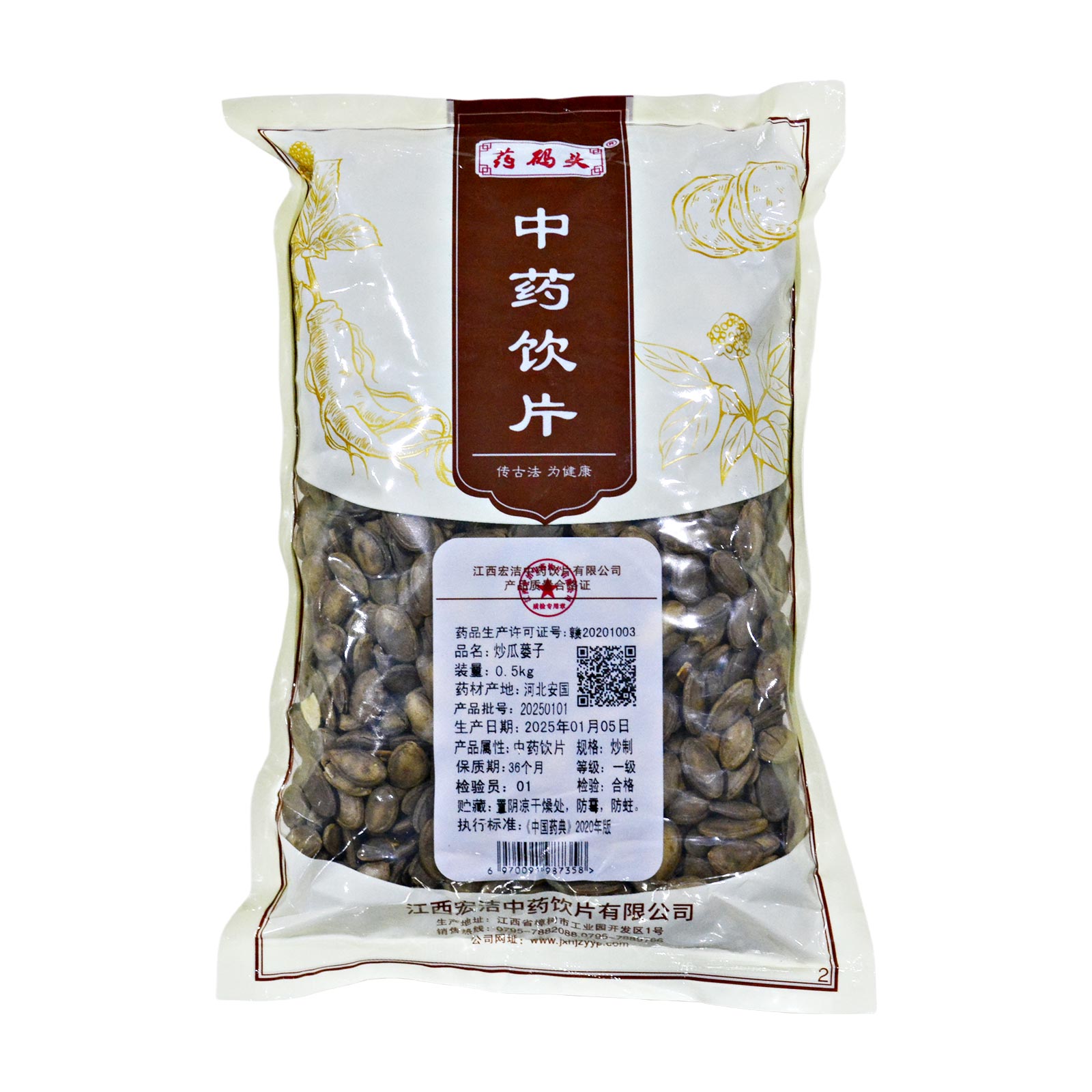 会员可见炒瓜蒌子江西宏洁中药饮片有限公司规格:一级*炒制*0.5kg效期:2028-01-04 件装量:1库存:充裕 中包装:0.50