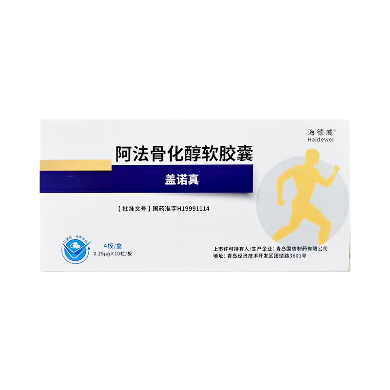 会员可见阿法骨化醇软胶囊青岛国信制药有限公司规格:0.25ug*40s效期:2027-12-18 件装量:100库存:充裕 中包装:1