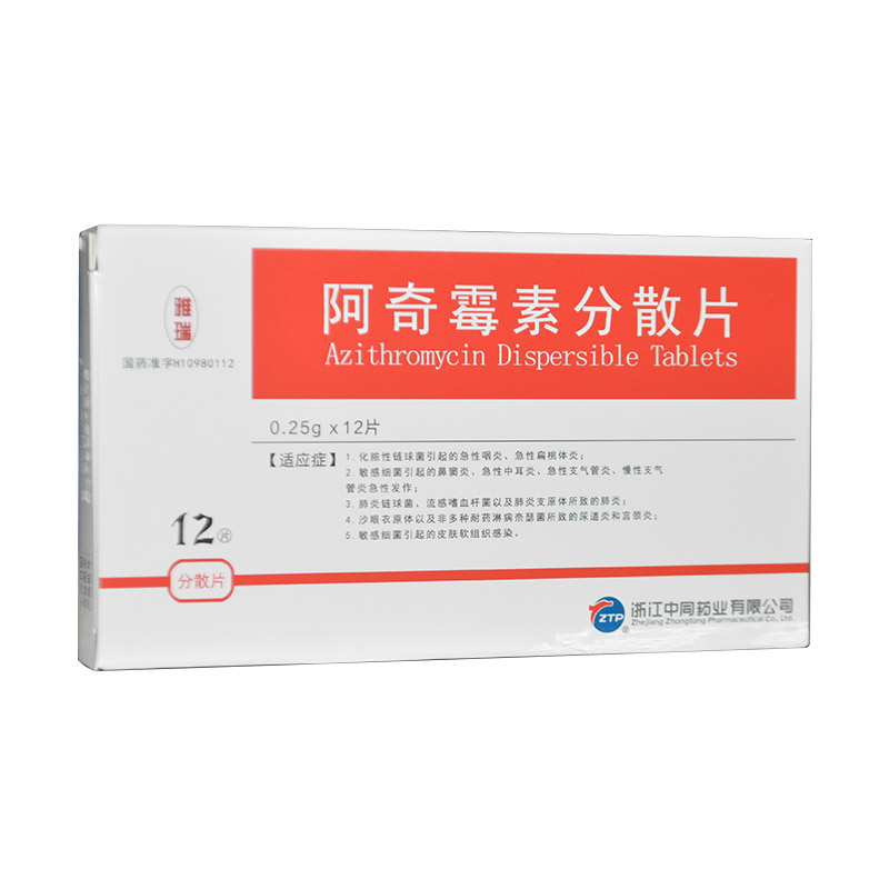 会员可见阿奇霉素分散片浙江中同药业有限公司规格:0.25g*12s效期:2027-11-30 件装量:400库存:充裕 中包装:10