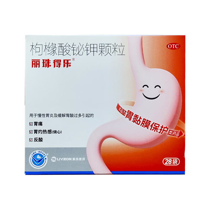 会员可见枸橼酸铋钾颗粒丽珠集团丽珠制药厂规格:120mg*28袋效期:2027-09-30 件装量:120库存:充裕 中包装:1