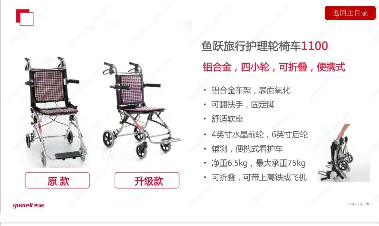 会员可见手动轮椅车江苏鱼跃医疗设备股份有限公司规格:1100效期:2030-12-08 件装量:1库存:充裕 中包装:1