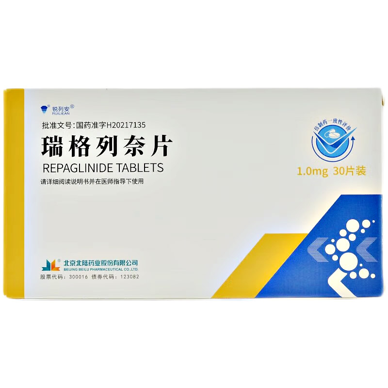 会员可见瑞格列奈片北京北陆药业股份有限公司规格:1.0mg*30s*1板效期:2028-12-31 件装量:300库存:充裕 中包装:1